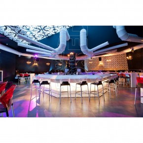 Sgabello impilabile con scocca in polipropilene rinforzato con fibra di vetro e schienale in policarbonato opaco o trasparente. Moderno e di design, si adatta ad ogni tipo di ambiente: caffè, ristoranti, hotels, locali. Per uso interno ed esterno
