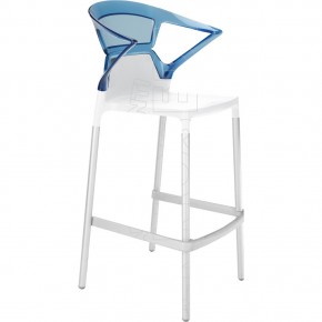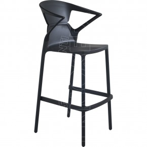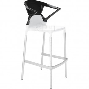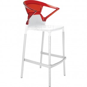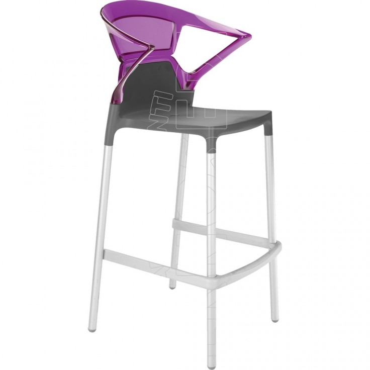 Sgabello con braccioli, impilabile, scocca in polipropilene rinforzato con fibra di vetro e schienale in policarbonato lucido o trasparente. Moderno e di design, si adatta ad ogni tipo di ambiente: caffè, ristoranti, hotels, locali. Per uso interno ed esterno