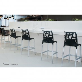 Sgabello impilabile con scocca in polipropilene rinforzato con fibra di vetro e schienale in policarbonato lucido o trasparente. Moderno e di design, si adatta ad ogni tipo di ambiente: caffè, ristoranti, hotels, locali, sale di attesa. Per uso interno ed esterno