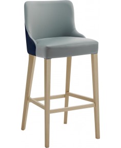 Sgabello con base in legno di faggio, spalliera e seduta rivestiti con tessuti tecnicamente avanzati, Monoblocco- Sgabello versatile per rendere accogliente e confortevole qualsiasi ambiente di relax e conversazione come ristoranti, bistrot, lounge bar, pub, sale di attesa, uffici , alberghi.
