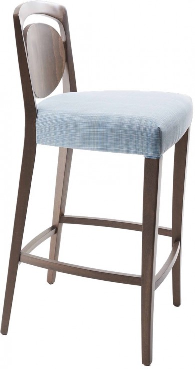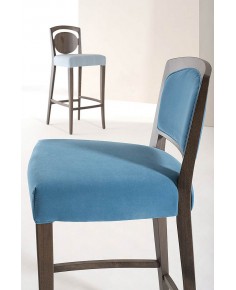 Sgabello con base in legno di faggio massiccio, spalliera e seduta rivestiti con tessuti tecnicamente avanzati, Monoblocco Sgabello versatile per rendere accogliente e confortevole qualsiasi ambiente di relax e conversazione come ristoranti, bistrot, lounge bar, sale di attesa, alberghi.