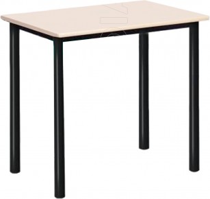 Struttura portante in tubolare d’acciaio, costituita da 4 montanti a sezione tonda diam. 40x1,5 mm. Saldature a filo continuo. Piano di lavoro in Nobilitato Melaminico E1 a bassa emissione di Formaldeide, con bordo in ABS r°2. Alla base sono inseriti puntali in estraibili in materiale plastico antisdrucciolo per aumentare l’aderenza del tavolo al suolo ed attenuare la rumorosità.