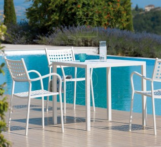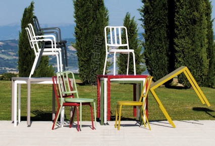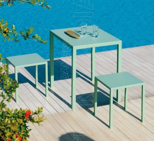Tavolo impilabile in metallo verniciato a polveri termoindurenti poliestere. Dotato della caratteristica speciale di trovare autonomamente stabilità su qualsiasi superficie. Altamente indicata per arredare con ricercatezza gli spazi all'aperto di Bar, Ristoranti, Agriturismi, Alberghi, Locali. Per uso esterno ed interno
