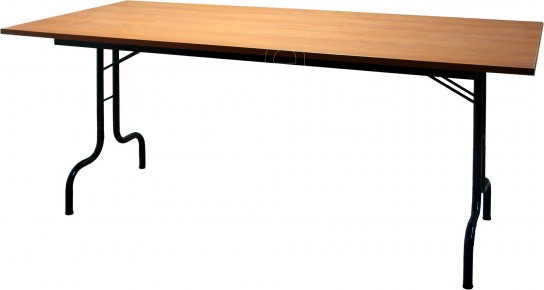 Tavolo pieghevole con struttura interamente metallica e fascia perimetrale di rinforzo. Piano in nobilitato melaminico di spessore 25mm. Bordo arrotondato antiurto in PVC