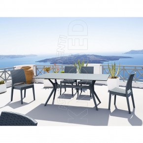 Tavolo con base in alluminio stampato rattan e piano in HPL. Altamente indicato per arredare con stile gli spazi all'aperto di Bar, Ristoranti, Alberghi, Locali. Per uso interno ed esterno.