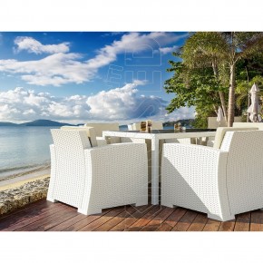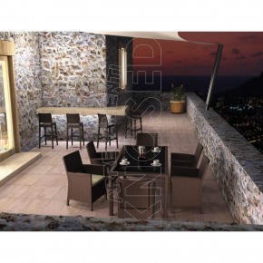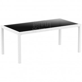 Tavolo smontabile in resina effetto rattan con piano in vetro temperato scuro. Altamente indicato per arredare con stile gli spazi all'aperto di Bar, Ristoranti, Alberghi, Locali. Per uso interno ed esterno.