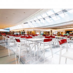 Tavolo con struttura in polipropilene e piano in HPL laminato 12mm. Smontabile. Resistente agli agenti atmosferici e totalmente sanificabile. Altamente indicato per ristoranti, bar, alberghi, pizzerie e qualsiasi ambiente outdoor. Per uso interno ed esterno.
