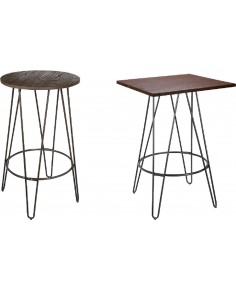 Tavolo in metallo verniciato color nero opaco con piano in legno rovere scuro- Particolarmente adatto per completare spazi dedicati al ristoro - Indicato per ambienti che vogliono ricreare lo spirito vintage-industrial : Ristoranti, Bar, Pub, Locali pubblici.