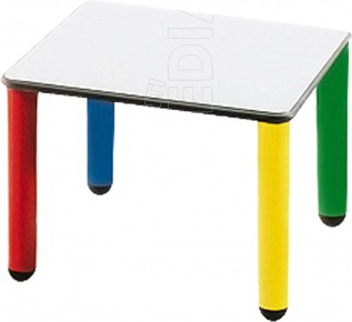 Tavolo componibile con piano in nobilitato dai bordi in plastica arrotondati e dotata di gambe in polipropilene, smontabili agevolmente. Il tavolo, può essere modificato in altezza con una semplice sostituzione dei tappi inferiori.
